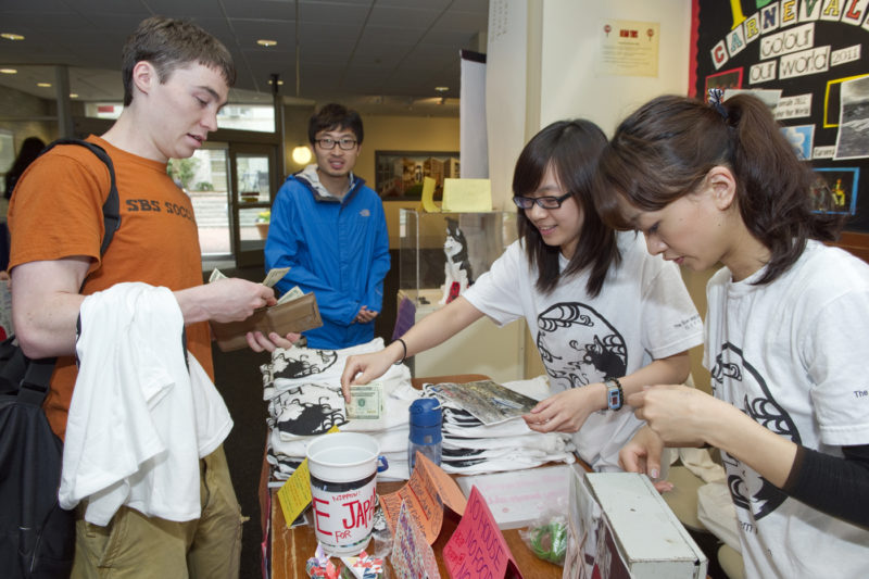 Tanaka is one of several students who have partnered with Northeastern to organize a range of relief efforts for the people of Japan. She and her roommate, Junko Shimazu, established a table in the Curry Student Center where they and other students are selling T-shirts, origami, candy and other items, with donations going to the Japanese Red Cross. Today is the final day the table will be open.