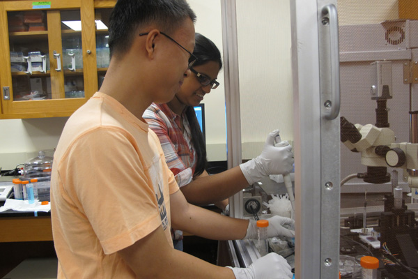 Yu works in the lab of chemical engineering assistant professor Edgar Goluch. “Our group’s research is much more extensive than labs conducted at my school,” Yu said of his lab work. “I enjoy working in my lab environment. I was exposed to many sophisticated instruments from integrated Palladium Hydride reference electrodes to micropipette.”