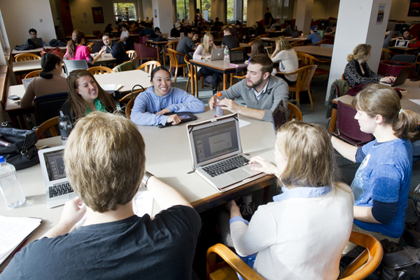 The town-hall meeting continued the ongoing dialogue between library officials and students, many of whom have shared their thoughts on the changes to the library environment on whiteboards and through surveys and social media. The biggest change to the library is the new Digital Media Commons, which opened in September on Snell Library’s second floor.