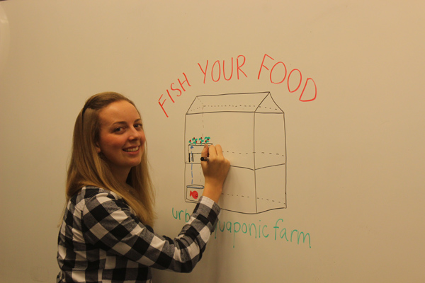 The budding entrepreneur’s idea to design a small-scale aquaponics farm took shape last year, when she worked for a California-based startup that sells consumer-based aquaponics kits. And her senior capstone project—a stop motion documentary on the efficacy of social business—piqued her interest in doing well by doing good.