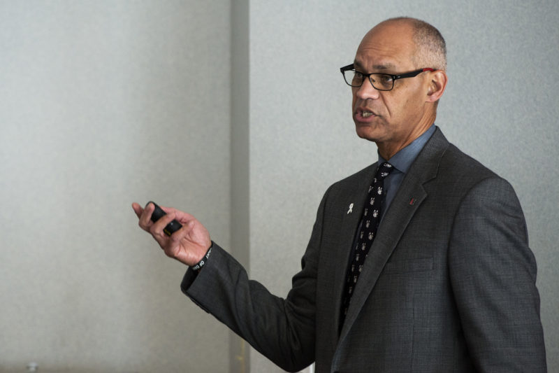 Northeastern University athletic director Peter Roby delivered his annual address to the Faculty Senate on Wednesday praising the university’s student-athletes for their achievements both on the playing field and in the classroom.