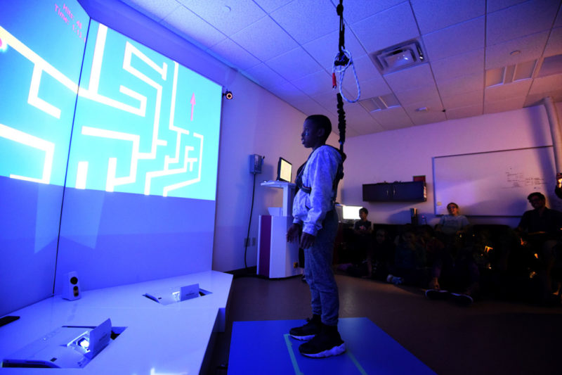 “Think about moving your body so that the light turns from red to green,” Levac instructed a student as he tried to figure out how his movements on a force plate in the physical world corresponded with the color shift.