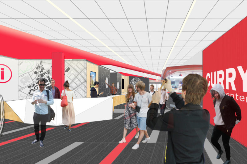 “A new multi-function information desk will be installed on the lower level of the Curry Student Center. The new dynamic counter is already under construction and will include space for student groups, campus information, and a business center. The interior corridor will also have updated carpet, ceiling, lighting, and graphics that will create a more welcoming area.”