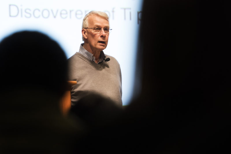 Roberts spoke to a standing-room only crowd during the latest installment of the “Beyond the Books” series, a program organized by Northeastern’s chapter of Delta Tau Delta to connect the campus community with opportunities to learn outside the classroom. Roberts and 120 other Nobel laureates have written an open letter to Greenpeace and every United Nations ambassador urging an acknowledgement that GMO technology is basically safe and should be supported for the sake of the developing world.