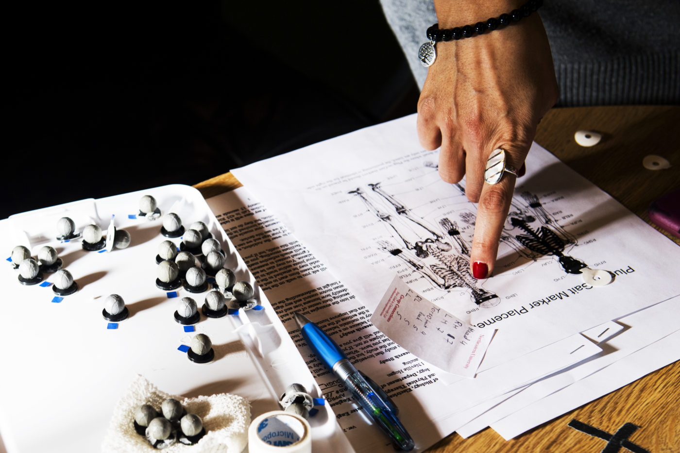 The researchers are using pressure-sensitive pads on the ground to measure the amount of force exerted by the dancers and the would-be cane in each exercise. They’re also recording the dancers’ movement with 12 cameras positioned all the way around the room.