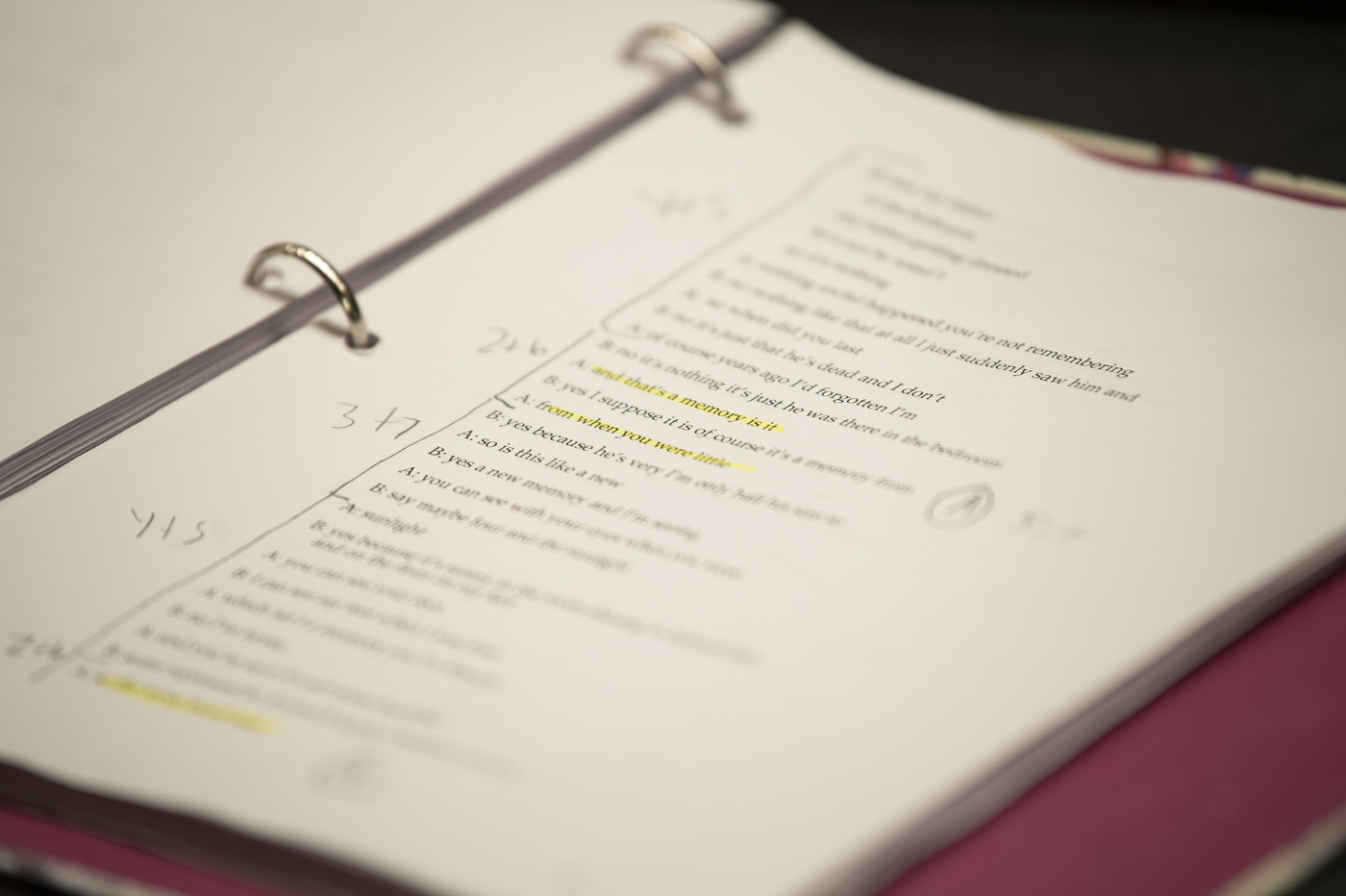 “They definitely are barriers to communication, but mostly the masks just necessitate some extra attention to volume, diction, and body language,” says Lyon, part of a broad ensemble cast performing “Love and Information,” a play that looks at human connections in the digital age through a series of 57 brief, unrelated interactions.