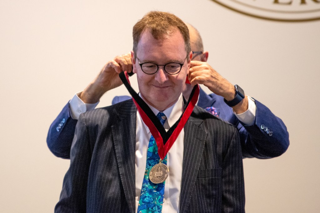 Michael Enright, a leading expert on international competitiveness and business strategy, who began teaching at Northeastern in 2020, was appointed as the first Pierre Choueiri Family Professor in Global Business at the D’Amore-McKim School of Business. Northeastern held an installment ceremony for Enright on Friday.