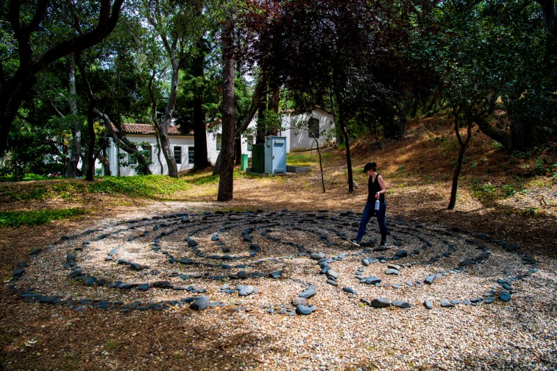 Other little corners of the campus have plenty to offer, including a rock labyrinth near the nondenominational campus chapel. The labyrinth forms the symbol for a woman: ♀.