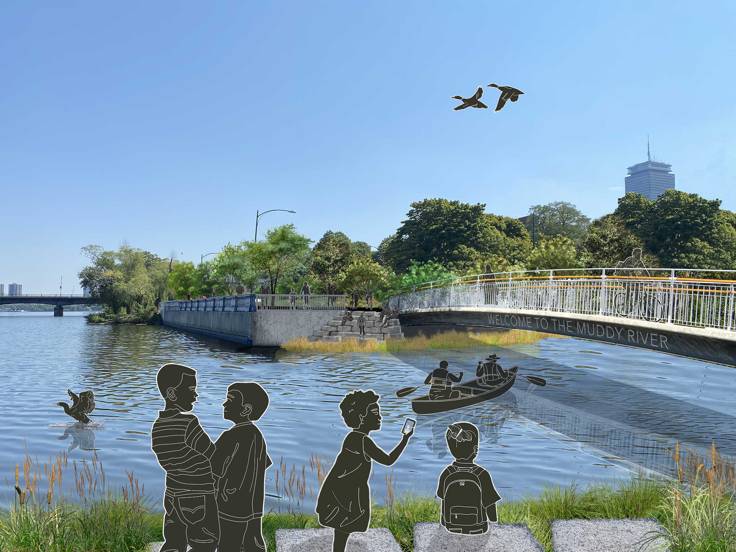 For that to happen, the architects plan to add a footbridge across the Muddy River that will maintain the continuity of the Esplanade and provide access to a hillside section of lawn that overlooks the Charles River and will connect to the Mass Ave. bridge.