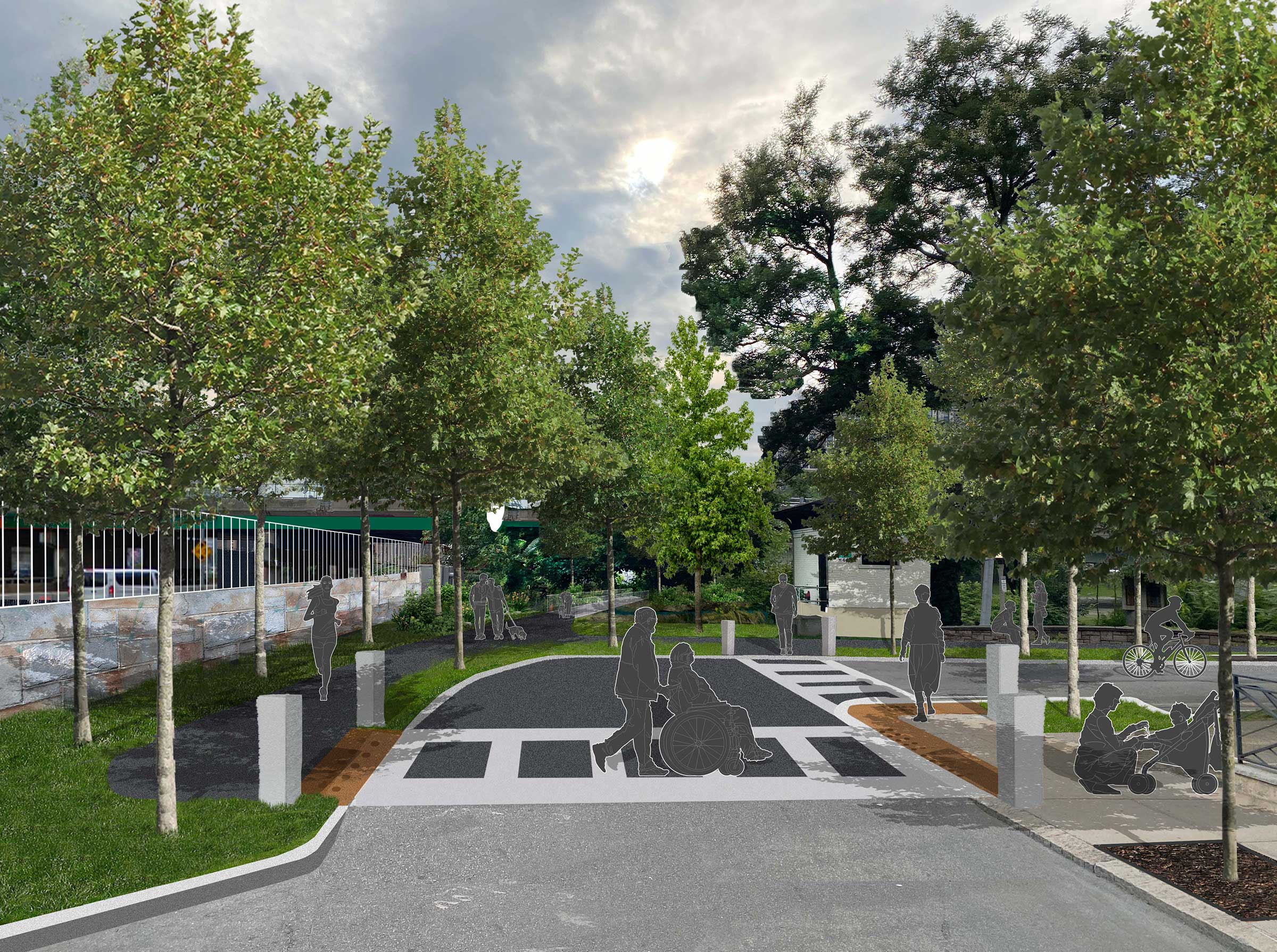As of now, the hilltop lawn, already shaded with a double row of small leaf linden trees, “is a trapped median in between roads,” he says.