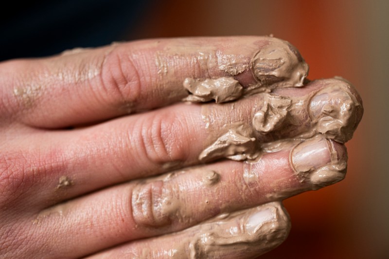 “It’s too soft,” Franczak sighs as the walls of the cylinder she’s formed buckle. Even so, she’s clearly enjoying getting her hands dirty. “I sit in front of a screen all day for my major, so this is a nice break,” she says.