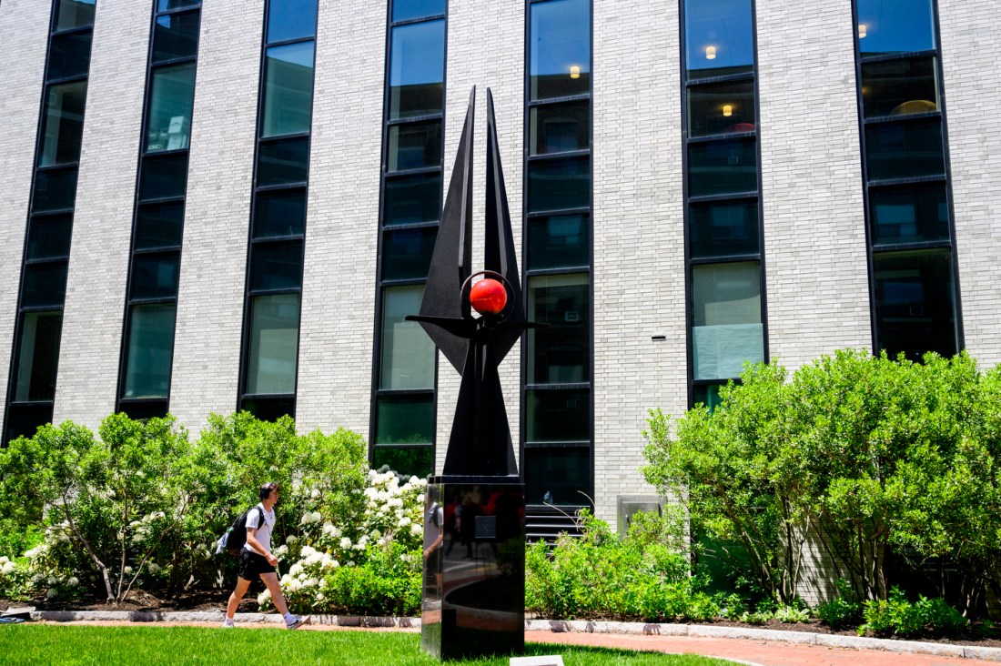 The “Pharah” sculpture on Northeastern’s Boston campus was created by Cuban-born sculptor and ceramist Rafael Consuegra.