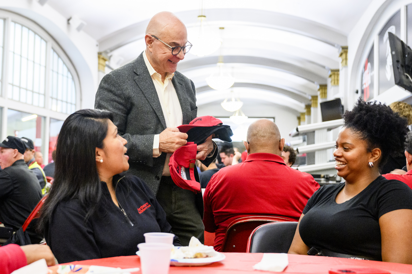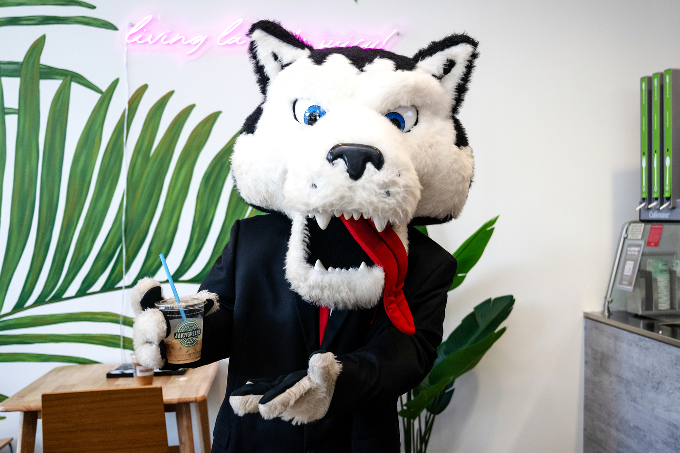 Northeastern University campus dog Ryder celebrated his second birthday with members of the Northeastern community, NUPD and resource dogs from other area universities on the Boston campus this week. Northeastern graduate and Juicygreens owner Ammy Lowney opened her eighth juice bar at Northeastern’s International Village on the Boston campus. President Joseph E. Aoun held a fireside chat with graduate and trustee Spencer Fung. And the president also handed out hats during the Facilities Department barbecue.