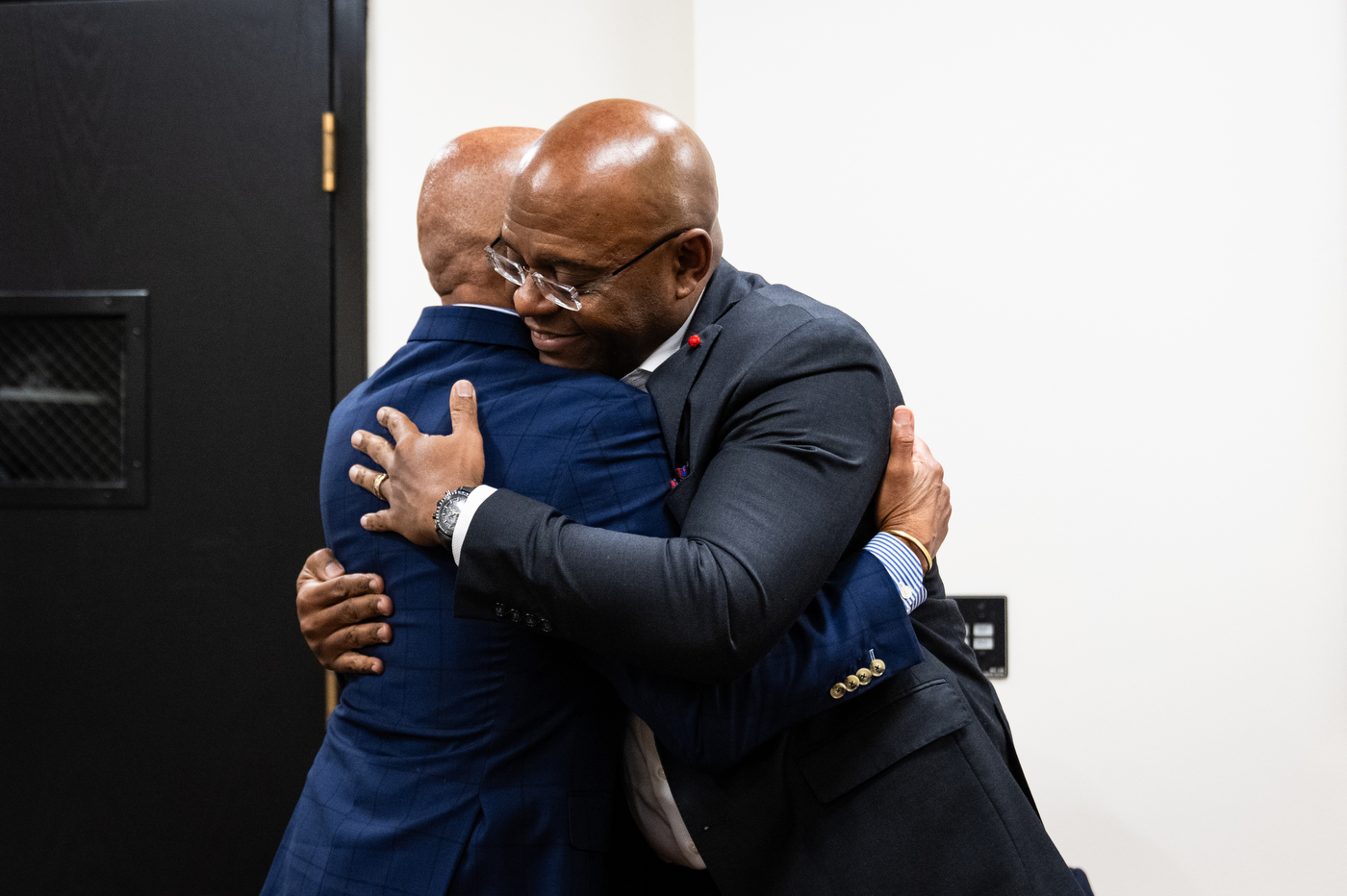 10/30/25 – BOSTON, MA. – A portrait unveiling of the Hon. William “Mo” Cowan ’94, who served as a Massachusetts Senator, is held at the Northeastern law school library on Thursday, Oct. 30, 2025. Speakers included James Hackney, Northeastern school of law dean, Roger Michel, executive director of the Institute for Digital Archaeology, the Hon. Roderick Ireland, former Chief Justice of the Supreme Judicial Court of Massachusetts, the Hon. Kimberly Budd, Chief Justice, Supreme Judicial Court of Massachusetts, Hon. Deval Patrick, 71st Governor of Massachusetts, and the Hon. William “Mo” Cowan. Photo by Alyssa Stone/Northeastern University10/30/25 – BOSTON, MA. – A portrait unveiling of the Hon. William “Mo” Cowan ’94, who served as a Massachusetts Senator, is held at the Northeastern law school library on Thursday, Oct. 30, 2025. Speakers included James Hackney, Northeastern school of law dean, Roger Michel, executive director of the Institute for Digital Archaeology, the Hon. Roderick Ireland, former Chief Justice of the Supreme Judicial Court of Massachusetts, the Hon. Kimberly Budd, Chief Justice, Supreme Judicial Court of Massachusetts, Hon. Deval Patrick, 71st Governor of Massachusetts, and the Hon. William “Mo” Cowan. Photo by Alyssa Stone/Northeastern University10/30/25 – BOSTON, MA. – A portrait unveiling of the Hon. William “Mo” Cowan ’94, who served as a Massachusetts Senator, is held at the Northeastern law school library on Thursday, Oct. 30, 2025. Speakers included James Hackney, Northeastern school of law dean, Roger Michel, executive director of the Institute for Digital Archaeology, the Hon. Roderick Ireland, former Chief Justice of the Supreme Judicial Court of Massachusetts, the Hon. Kimberly Budd, Chief Justice, Supreme Judicial Court of Massachusetts, Hon. Deval Patrick, 71st Governor of Massachusetts, and the Hon. William “Mo” Cowan. Photo by Alyssa Stone/Northeastern University10/30/25 – BOSTON, MA. – A portrait unveiling of the Hon. William “Mo” Cowan ’94, who served as a Massachusetts Senator, is held at the Northeastern law school library on Thursday, Oct. 30, 2025. Speakers included James Hackney, Northeastern school of law dean, Roger Michel, executive director of the Institute for Digital Archaeology, the Hon. Roderick Ireland, former Chief Justice of the Supreme Judicial Court of Massachusetts, the Hon. Kimberly Budd, Chief Justice, Supreme Judicial Court of Massachusetts, Hon. Deval Patrick, 71st Governor of Massachusetts, and the Hon. William “Mo” Cowan. Photo by Alyssa Stone/Northeastern University10/30/25 – BOSTON, MA. – A portrait unveiling of the Hon. William “Mo” Cowan ’94, who served as a Massachusetts Senator, is held at the Northeastern law school library on Thursday, Oct. 30, 2025. Speakers included James Hackney, Northeastern school of law dean, Roger Michel, executive director of the Institute for Digital Archaeology, the Hon. Roderick Ireland, former Chief Justice of the Supreme Judicial Court of Massachusetts, the Hon. Kimberly Budd, Chief Justice, Supreme Judicial Court of Massachusetts, Hon. Deval Patrick, 71st Governor of Massachusetts, and the Hon. William “Mo” Cowan. Photo by Alyssa Stone/Northeastern UniversityRoderick Ireland, former chief justice of the Massachusetts Supreme Judicial Court and a distinguished professor of criminology and criminal justice at Northeastern, first met the former Massachusetts senator when he was a law student at Northeastern. Photos by Alyssa Stone/Northeastern University