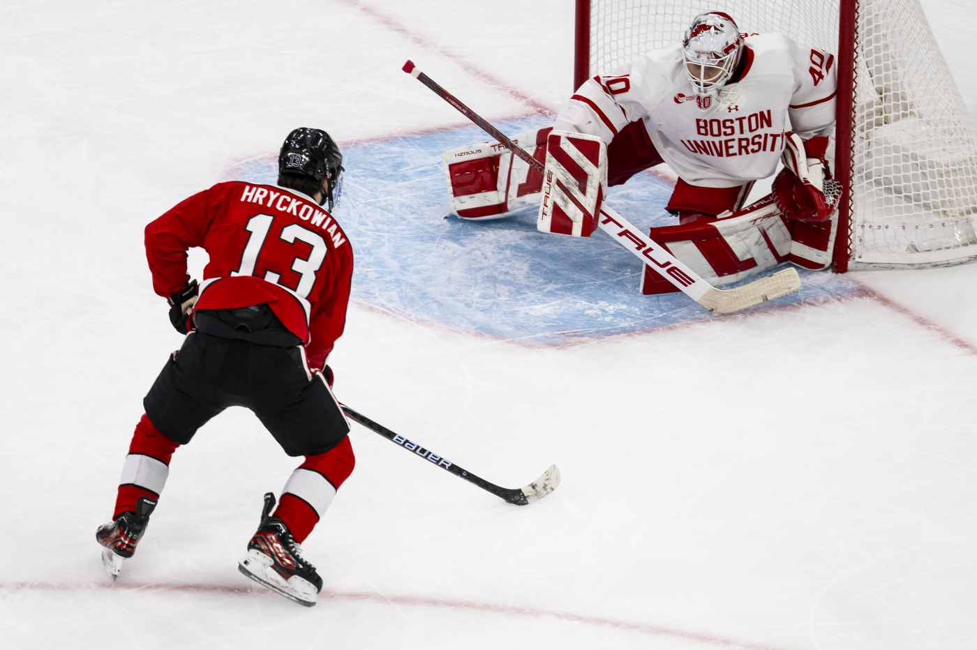 Northeastern junior Dylan Hryckowian put the Huskies on top, 1-0, on a power play goal midway through the first period.