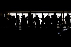 President Trump and President Putin silhouettes seen standing side by side from behind.